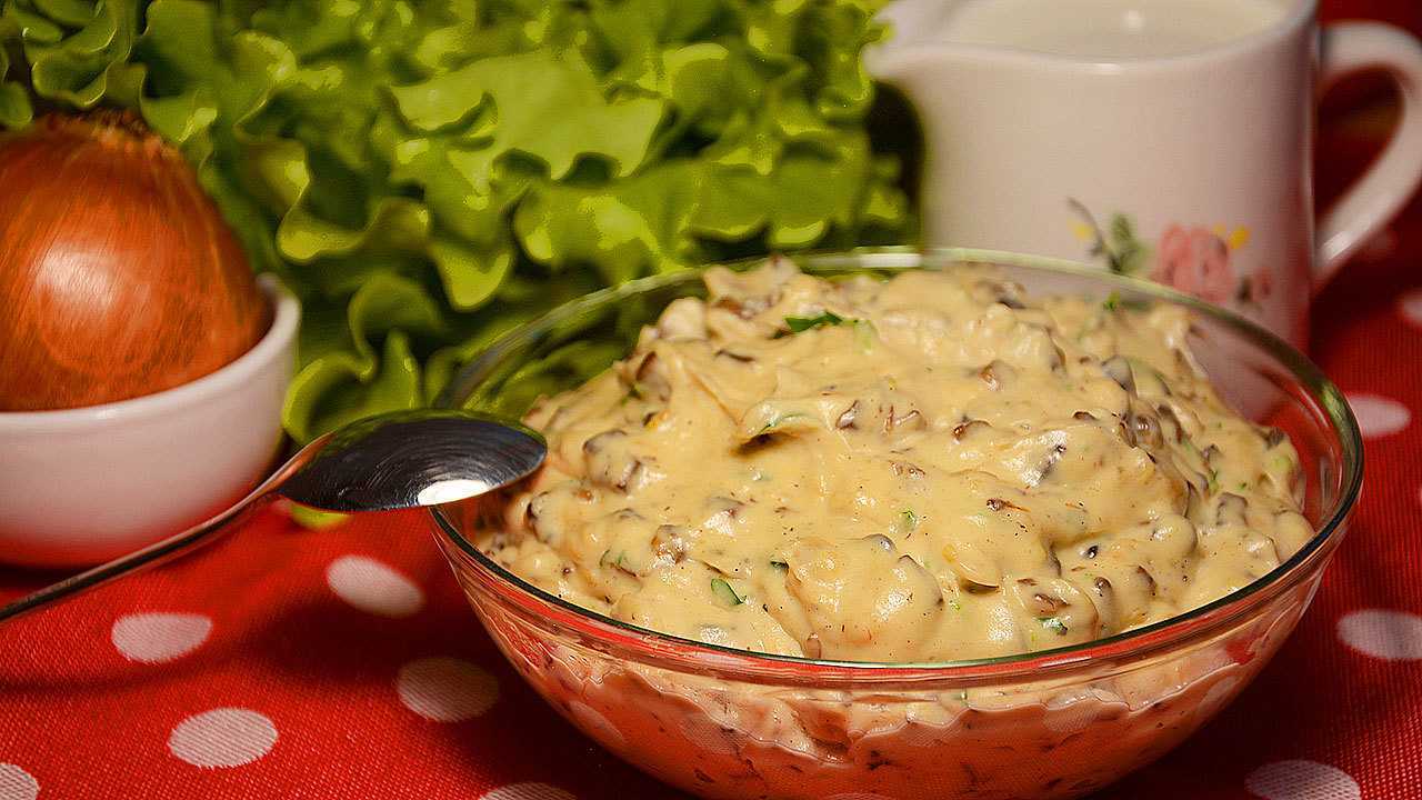 Лесные грибы обладают особым ароматом и вкусом, поэтому блюда с ними получается более яркими и насыщенными. Такой соус хорошо подойдет к клецкам, макаронам или кашам. Жареный лук еще больше обогатит вкус соуса.