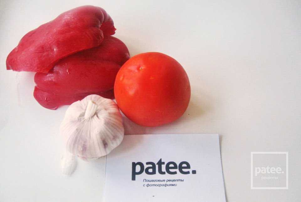 А еще перец болгарский красный, помидор и чеснок. Еще понадобятся соль, перец и немного любого растительного масла по вкусу.