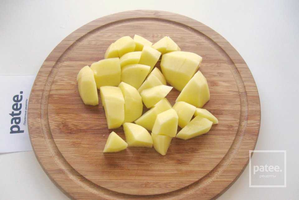 - Порубить мякоть на квадраты. Выложить в сковородку и пожарить без добавления масла.