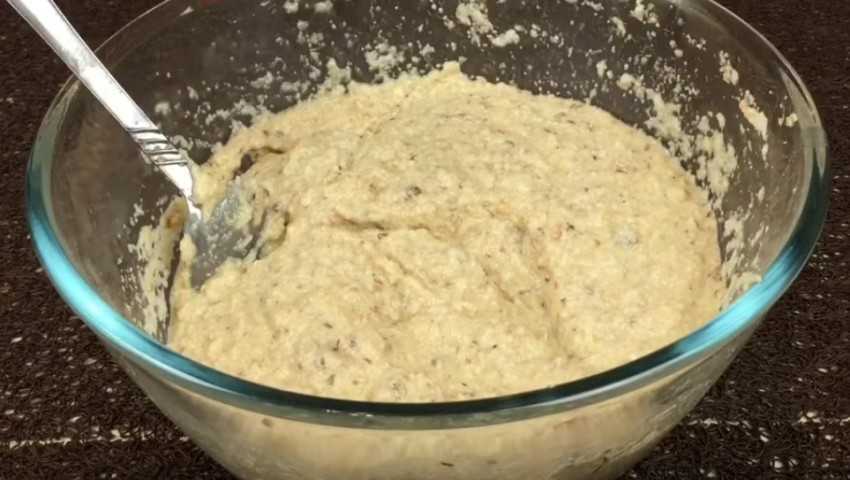 Все ингредиенты хорошо перемешиваем. Добавляем муку (2 столовые ложки) и снова вымешиваем. По необходимости досаливаем.