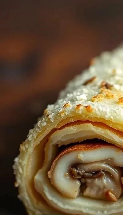 - Запекание (по желанию): Для более нежного вкуса, после обжаривания рулет можно запечь в духовке при температуре 180°C в течение 20-25 минут.