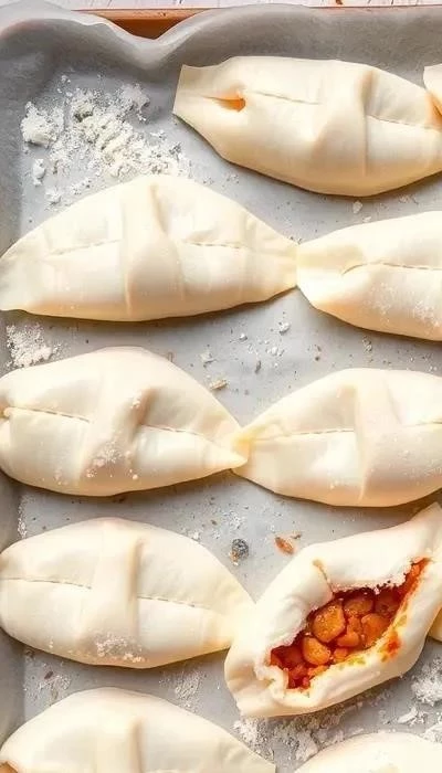 5. В центр каждой лепешки выложить 1-2 столовые ложки начинки.