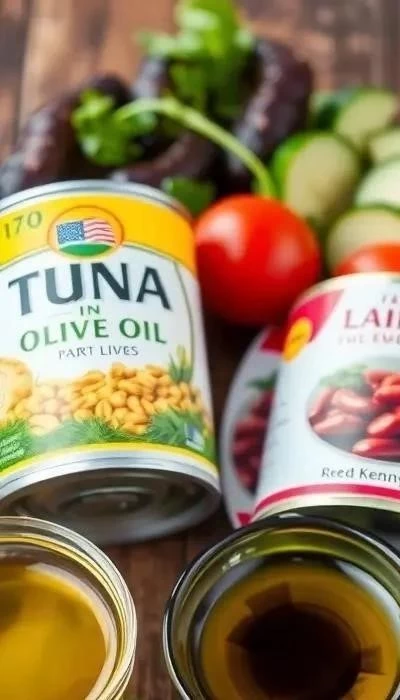 Тунец: Выбирайте тунец в собственном соку, а не в масле, чтобы снизить содержание жира. Обратите внимание на срок годности и целостность упаковки.