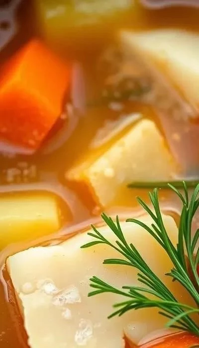 - Добавление овощей: Картофель нарежьте кубиками, морковь – кружочками или соломкой, лук – мелко. Добавьте овощи в бульон и варите до полуготовности картофеля (около 15 минут).