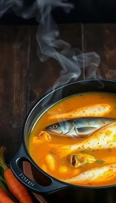 - Варка бульона: Положите карася в кастрюлю, залейте холодной водой и доведите до кипения. Снимите пену, убавьте огонь до минимума и варите бульон 30-40 минут.