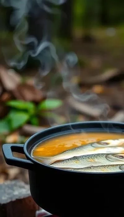 Уха на костре: Для приготовления ухи на костре используйте чугунную кастрюлю. Варите уху на медленном огне, постоянно помешивая. Аромат ухи, приготовленной на костре, просто неповторим!