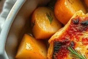 - Картофель: Картофельное пюре или запеченный картофель с травами.