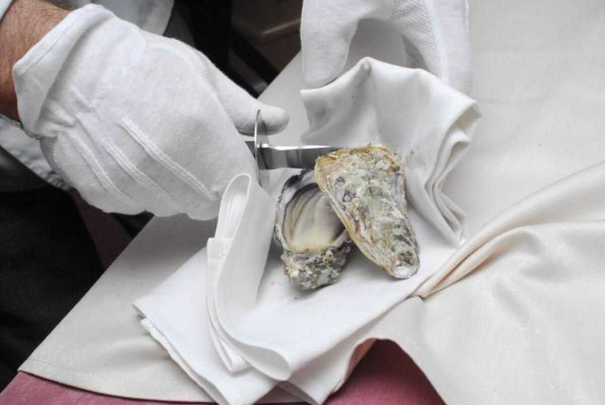 Открывать раковины следует за 30 минут до употребления моллюска. Возьмите устрицу в левую руку таким образом, чтобы острый кончик раковины смотрел на вас, а нож — в правую. Большой палец положите на лезвие на расстоянии 1 см от кончика ножа. Вставьте нож между половинок раковины и аккуратно обведите вокруг мяса. Приподнимите верхнюю половинку раковины и отодвиньте ее. Не забудьте удалить осколки, если они попали в мясо. Положите раковину на тарелку так, чтобы из нее не выпали внутренности.