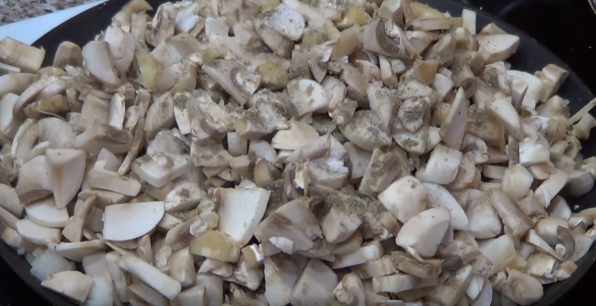 Шампиньоны промыть водой, обтереть полотенцем. Порезать кусочками.