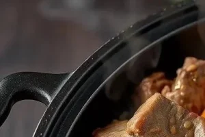 В качестве овощей, помимо тех, что указаны в классическом рецепте, мы рекомендуем использовать морковь, помидор и томатную пасту (хоть это и не овощ). Все это следует измельчить и уложить в контейнер перед тем, как залить водой. Тушить говядину следует полтора часа, можно даже чуть больше.