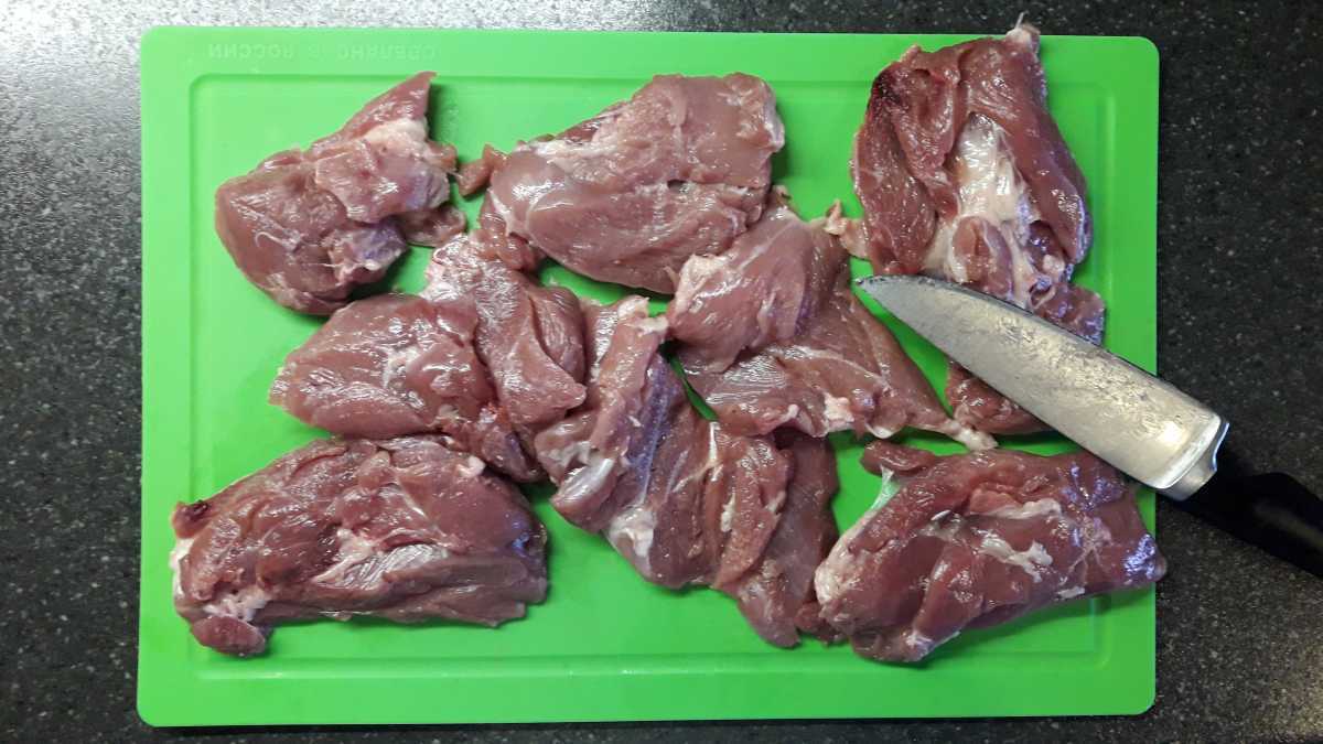 Вымойте мясо и нарежьте небольшими кусками толщиной около 1,5 см.