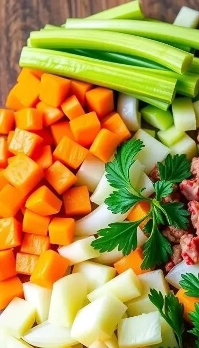 Овощи – ключевой элемент пастушьего пирога. Лук, морковь и сельдерей создают ароматную основу для мясной начинки. Сельдерей придает пикантный вкус, морковь – сладость, а лук – глубину. Не жалейте овощей, они сделают ваш пирог более насыщенным и вкусным!