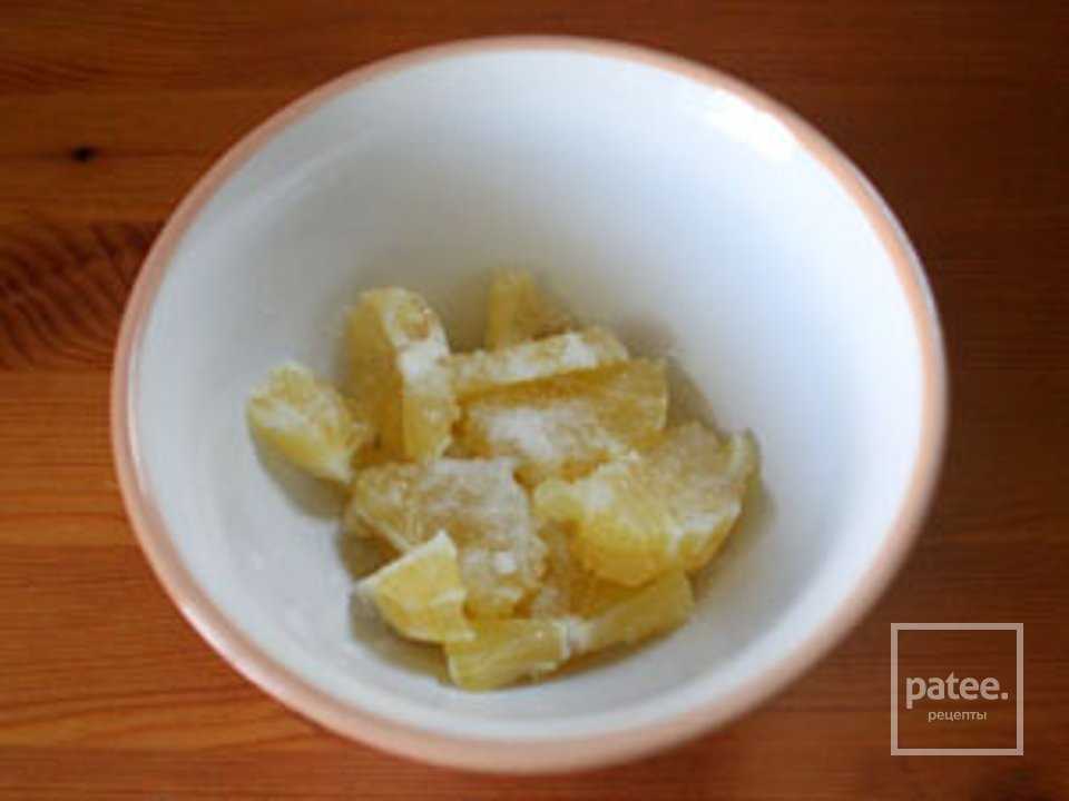 … засыпать солью (1 ч. л.) и перемешать. Лимон, так же, как и курицу, поместить в холодильник на 3 часа, или на ночь.