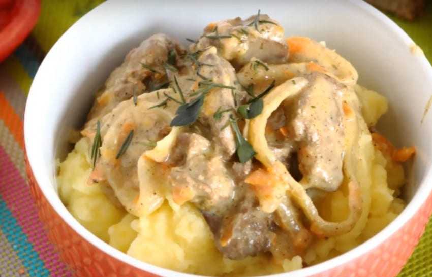 Если человек устал или не имеет достаточного времени на готовку, стоит обратить внимание на этот рецепт. Вкуснее всего подавать сливочную печенку с картофельным пюре, гречкой или же макаронами, маринованными огурцами