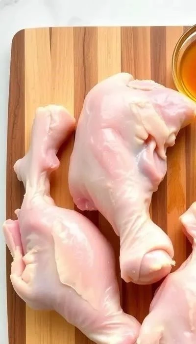 - Маринование курицы: В миске смешайте куриные бедрышки с солью, перцем и половиной зерновой горчицы. Оставьте мариноваться на 30-60 минут.