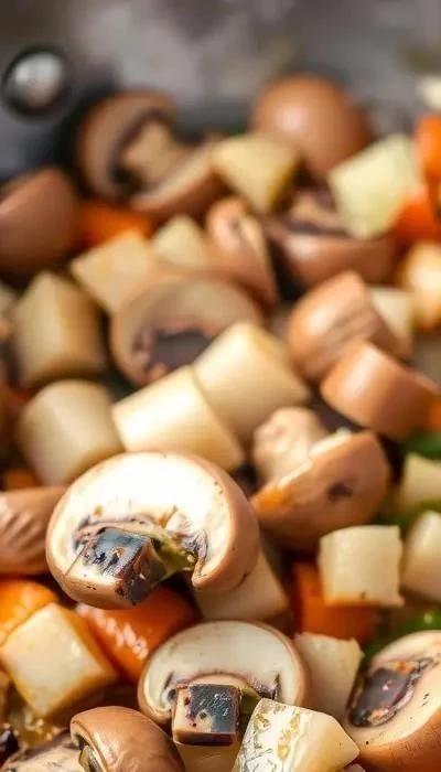 Грибы – сердце вкуса! Шампиньоны тщательно промываем и нарезаем небольшими кубиками. Лук мелко шинкуем, морковь трем на крупной терке. Как Sang Woo просчитывал ходы, мы готовим основу для ароматной начинки.
