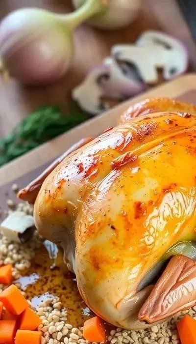 Для приготовления этой восхитительной курицы, фаршированной гречкой и грибами, нам понадобятся следующие ингредиенты: одна курица (около 1,5-2 кг), 1 стакан гречневой крупы, 300 г свежих грибов (шампиньоны, вешенки или лесные), 1 крупная луковица, 1 морковь, 2-3 зубчика чеснока, соль, перец, любимые специи (паприка, куркума, сушеный чеснок), растительное масло для жарки.