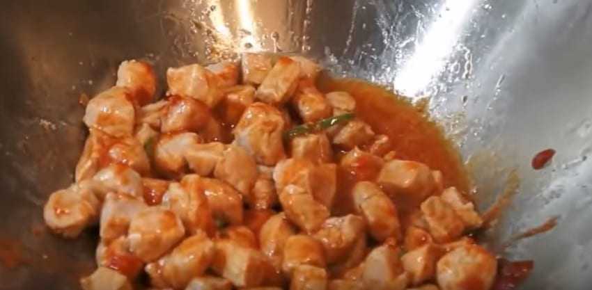 По следующему рецепту мы будем готовить на сковороде. Так занимается меньшее количество посуды, да и готовится на самом деле попроще. Единственное, тара для такого способа нужна глубокая и с высокими бортами. Отлично подойдёт что-то наподобие сотейника или вока.