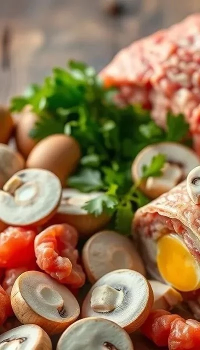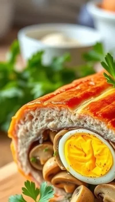 Мясной рулет с грибами и яйцом – это не просто блюдо, это возвращение в детство, к ароматам домашнего очага и вкусам, которые навсегда остаются в памяти. Как пишет Ники Белоцерковская в своей книге «Мясомясо», вкусные мясные блюда необходимы в семье, особенно если в ней есть мужчины! Этот рецепт – идеальный вариант для праздничного стола, воскресного обеда или просто уютного семейного вечера. Представьте себе ароматное блюдо, которое никого не оставляет равнодушным!