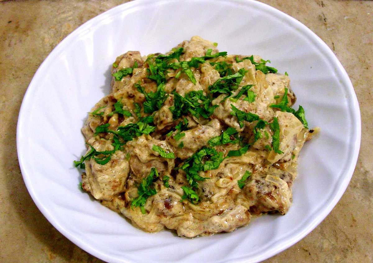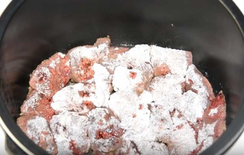 Мягкая свиная печень, тушеная в сметанном соусе в мультиварке