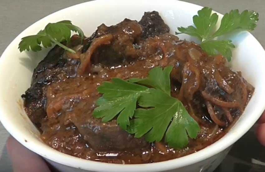 Классический рецепт сочной говяжьей печёнки, жареная с луком, морковью и сметаной