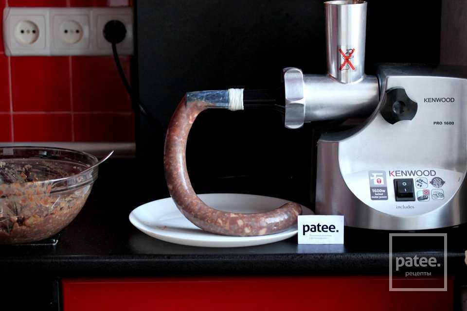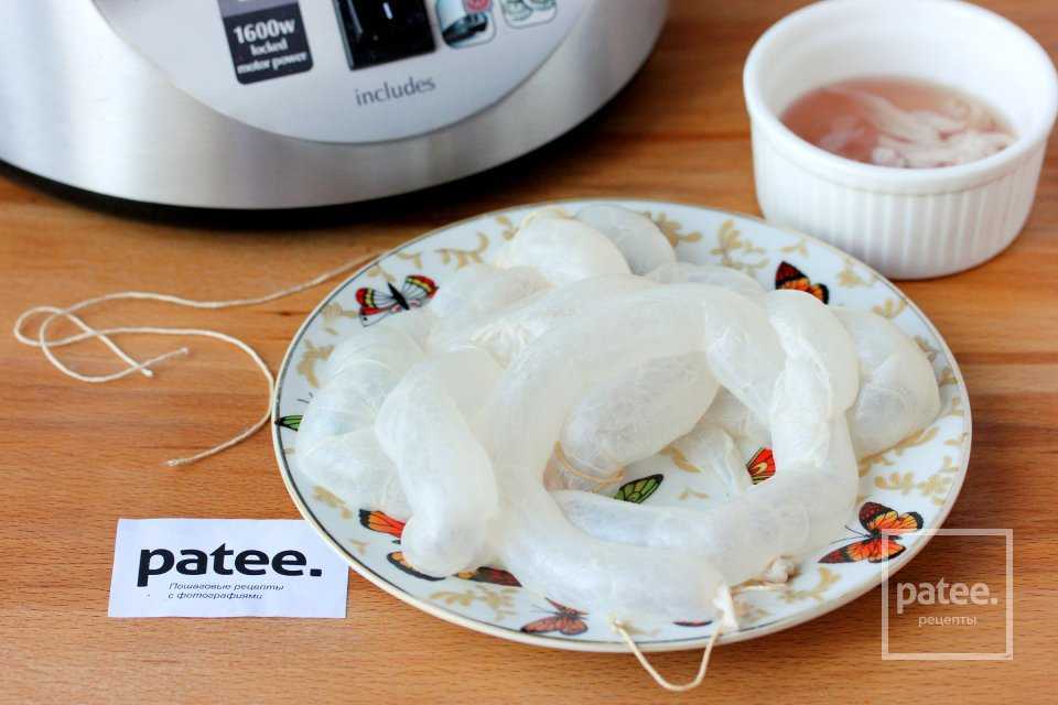Не рекомендуется слишком плотно набивать кишку, иначе во время приготовления оболочка может попросту лопнуть.