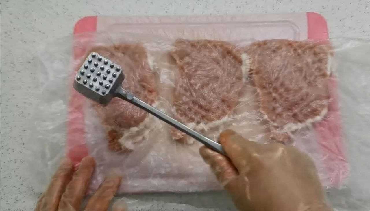 Шаг 3. Накрываем каждую пластину пищевой пленкой или пакетом, во избежание брызг и хорошенько отбиваем молоточком.