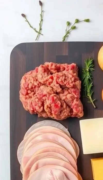 Основа вкуса вашего рулета из фарша — качество ингредиентов. Для основы лучше всего взять смешанный фарш (свинина и говядина) для сочности. Выбирайте сыр твердых сортов, который хорошо плавится, и нежирную ветчину. Свежий лук, чеснок и щепотка мускатного ореха сделают его вкус ярче.