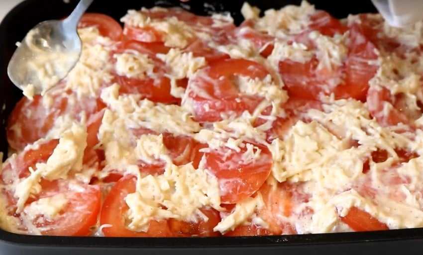 9. Наверх положите помидоры. Они дадут много сока, и блюдо получится более сочным и ароматным.