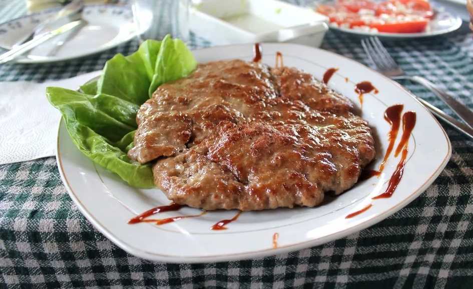 Для этого национального блюда Черногории нужно взять минеральную воду. Она придаст фаршу особый вкус, сделает его мягче. Перемалывать мясо нужно в мясорубке два раза. Тогда котлета получится однородной, не будет уплотнений внутри. К черногорской плескавице нужно приготовить соус. Его делают отдельно от основного блюда.