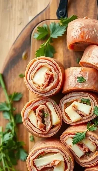 Подавайте рулетики с соусами: сметанным, томатным или горчичным. Украсьте зеленью и свежими овощами для придания блюду аппетитного вида.