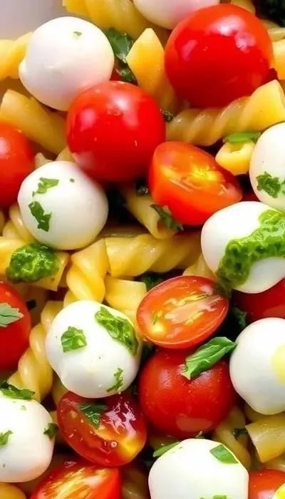 Рецепт 3: Итальянский салат с макаронами, моцареллой и песто