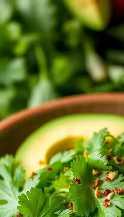 - Салат с кинзой и авокадо: Добавьте в салат нарезанный кубиками авокадо для более кремовой текстуры и полезных жиров.