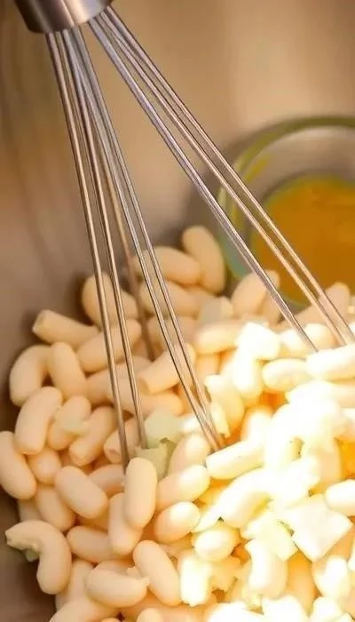 - Смешивание ингредиентов: В большой миске смешайте фасоль, лук, соль и перец.