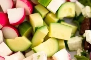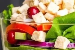 - Орехи: Грецкие орехи или миндаль добавят салату хрустящую текстуру и полезные жиры.