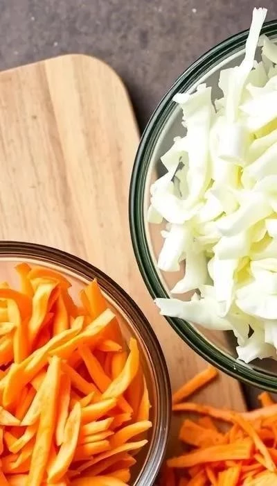 - В большой миске смешайте капусту, морковь и лук.