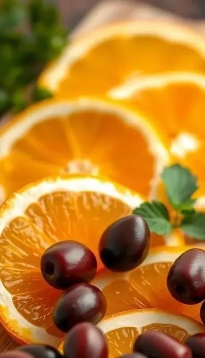 Этот салат – не только вкусно, но и невероятно полезно! Апельсины богаты витамином C, который укрепляет иммунитет и помогает бороться с простудными заболеваниями. Они также содержат витамины группы B, калий и фолиевую кислоту. Оливки – источник полезных жиров, антиоксидантов и витамина E, который способствует здоровью кожи и волос. Добавление зелени, такой как руккола или шпинат, обогащает салат витаминами K и A, а также клетчаткой, необходимой для нормального пищеварения. Вместе эти ингредиенты создают настоящий витаминный коктейль, который заряжает энергией и улучшает общее состояние организма. Регулярное употребление этого салата способствует укреплению иммунитета, улучшению пищеварения и поддержанию здоровья кожи.