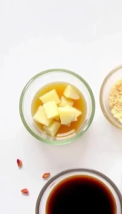 - Приготовьте соус: смешайте соевый соус, кунжутное масло, рисовый уксус, измельченный чеснок и мед.