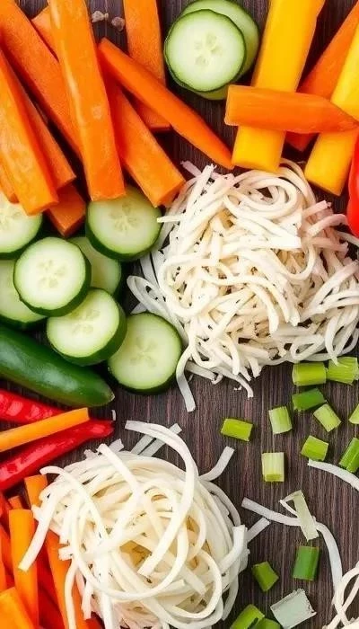 - Лапша: Рисовая лапша (фунчоза) или пшеничная лапша (удон, соба) – выбирайте качественную лапшу, которая не разваривается и сохраняет свою форму.