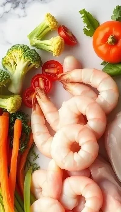 - Белок: Курица (грудка или бедро), креветки, тофу, свинина – выбирайте качественное мясо или морепродукты.