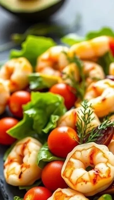 2. Салат с Авокадо, Помидорами Черри и Креветками