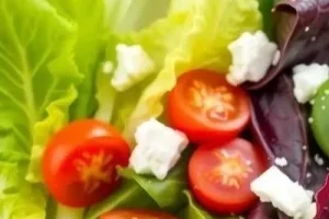 - Заправка салата: Полейте салат заправкой и аккуратно перемешайте, чтобы все ингредиенты были равномерно покрыты.