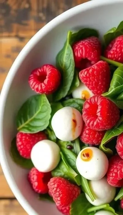 - Другие ягоды: Клубника, черника или ежевика прекрасно сочетаются с малиной и моцареллой.