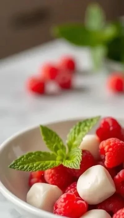 Дополнительная информация: Моцарелла – это не только вкусный, но и полезный продукт, богатый белком и кальцием. Малина содержит антиоксиданты и витамины, которые укрепляют иммунитет и улучшают общее состояние организма.
