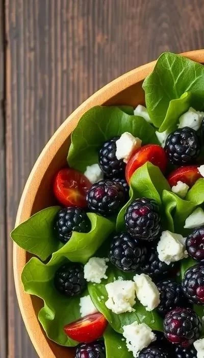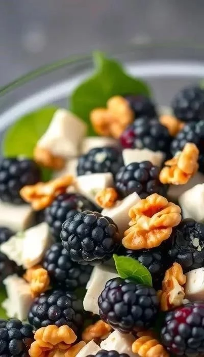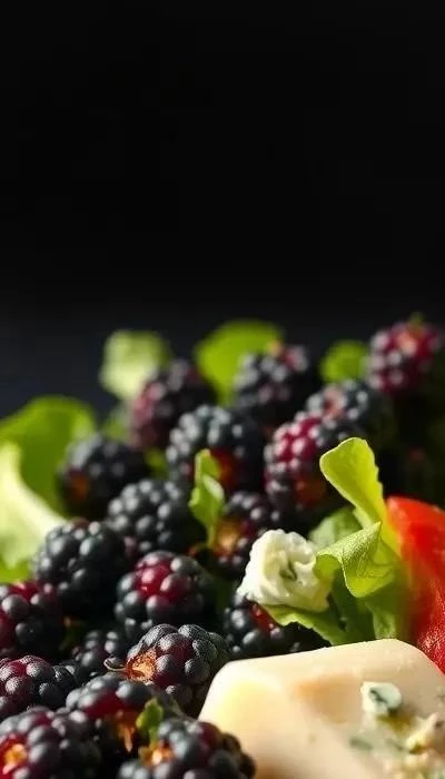 - Соберите салат: В большой миске смешайте рукколу, ежевику и горгонзолу.