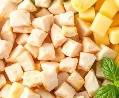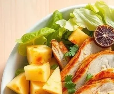 Откройте для себя секрет идеального салата с курицей и ананасом! Легкий, сочный и невероятно вкусный – этот рецепт станет звездой вашего стола. Готовим просто и быстро!