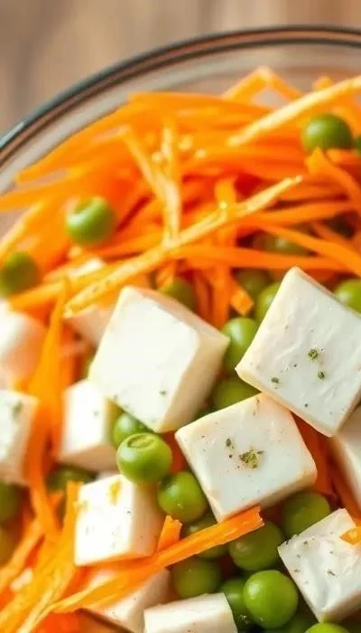 4. Постный Салат с Тофу, Морковью и Зеленым Горошком