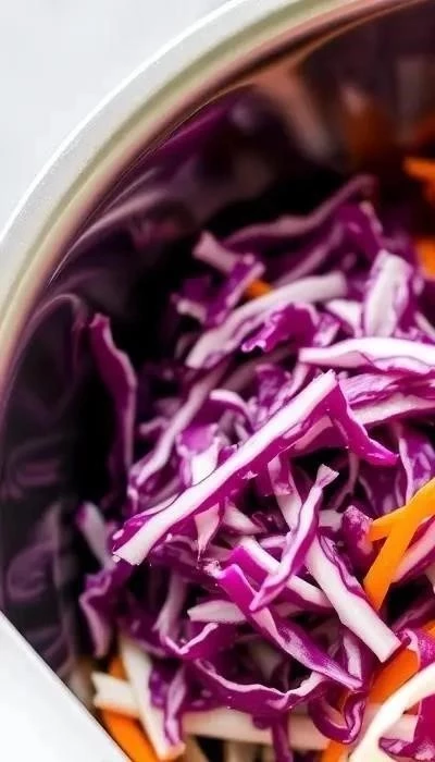 - Смешивание ингредиентов: Добавьте морковь и измельченный чеснок к капусте. Залейте все приготовленной заправкой и тщательно перемешайте.