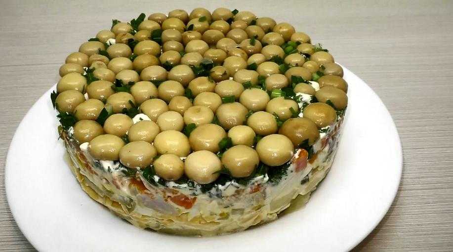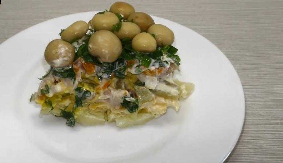 Салат Грибная поляна с шампиньонами, курицей и сыром