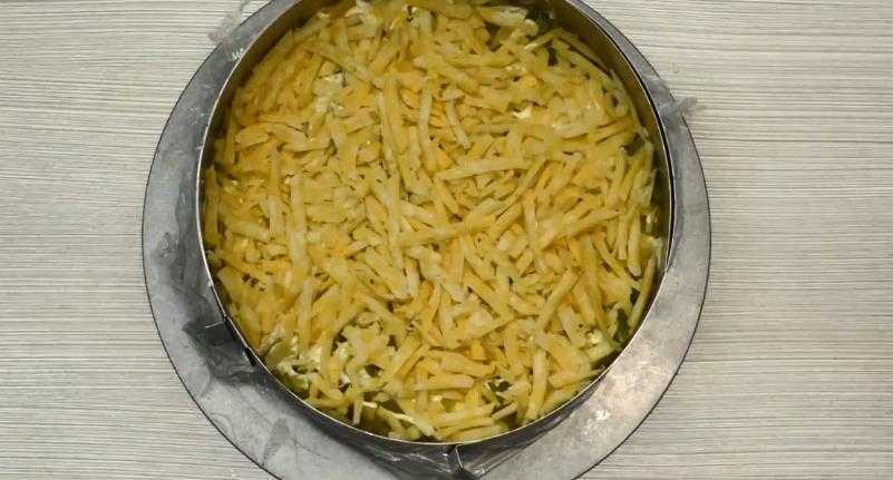 4. Теперь возьмите кулинарное колечко и в него уложите всю полученную массу.